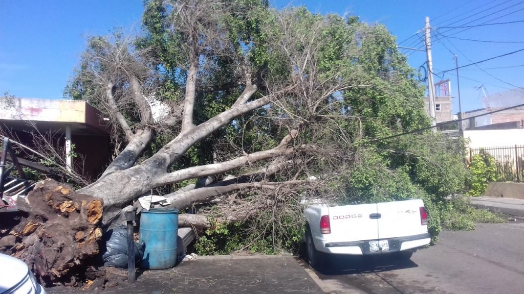 Ciudad Obregón, Sonora, agosto del 2018.- El Ayuntamiento de Cajeme, a través de la Unidad Municipal de Protección Civil (UMPC) y la Secretaría de Imagen Urbana ha venido atendiendo los reportes de caída de árboles, así como los cortes de energía eléctrica que se han venido registrando a raíz de los fuertes vientos provocados por la tormenta registrada la madrugada de este martes.