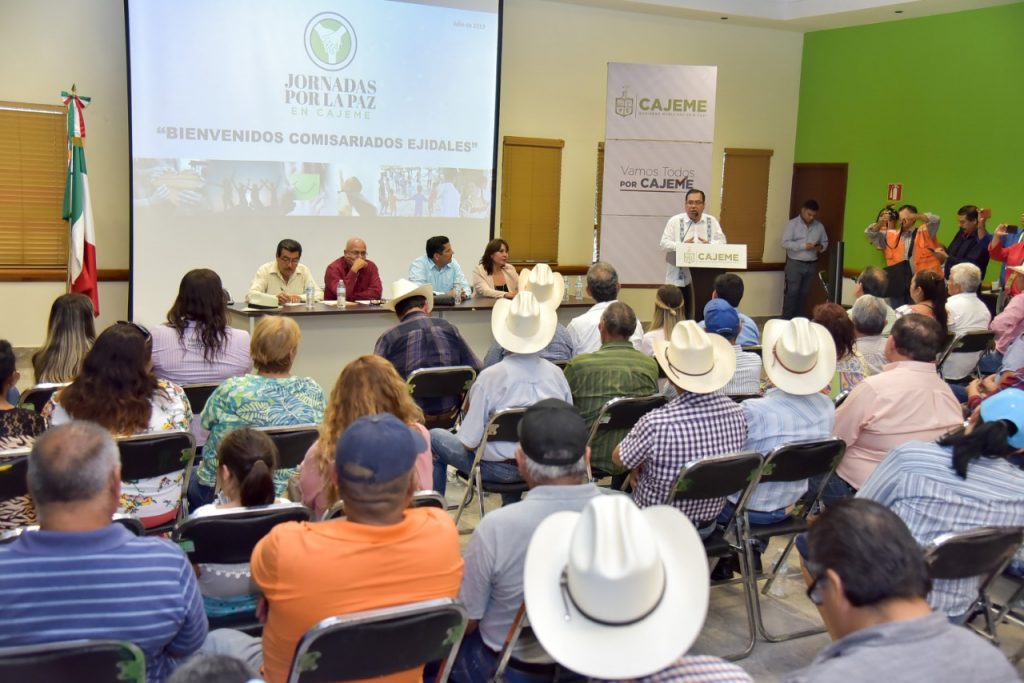 Ante un nutrido grupo de dirigentes de los Ejidos del municipio, el Alcalde Sergio Pablo Mariscal Alvarado expresó que esta es una reunión muy importante, ya que, con la participación de los organismos ejidales, sindicales, representantes de iglesias, productores locales, empresarios, personal de prevención del delito, académicos, personal del Distrito de Riego del Río Yaqui, del Movimiento Ciudadano por el Agua, autoridades tradicionales de la tribu Yaqui, escuelas y organizaciones de la sociedad civil, se está integrando una agenda, más allá de la operatividad, para la construcción de la paz en el municipio.
