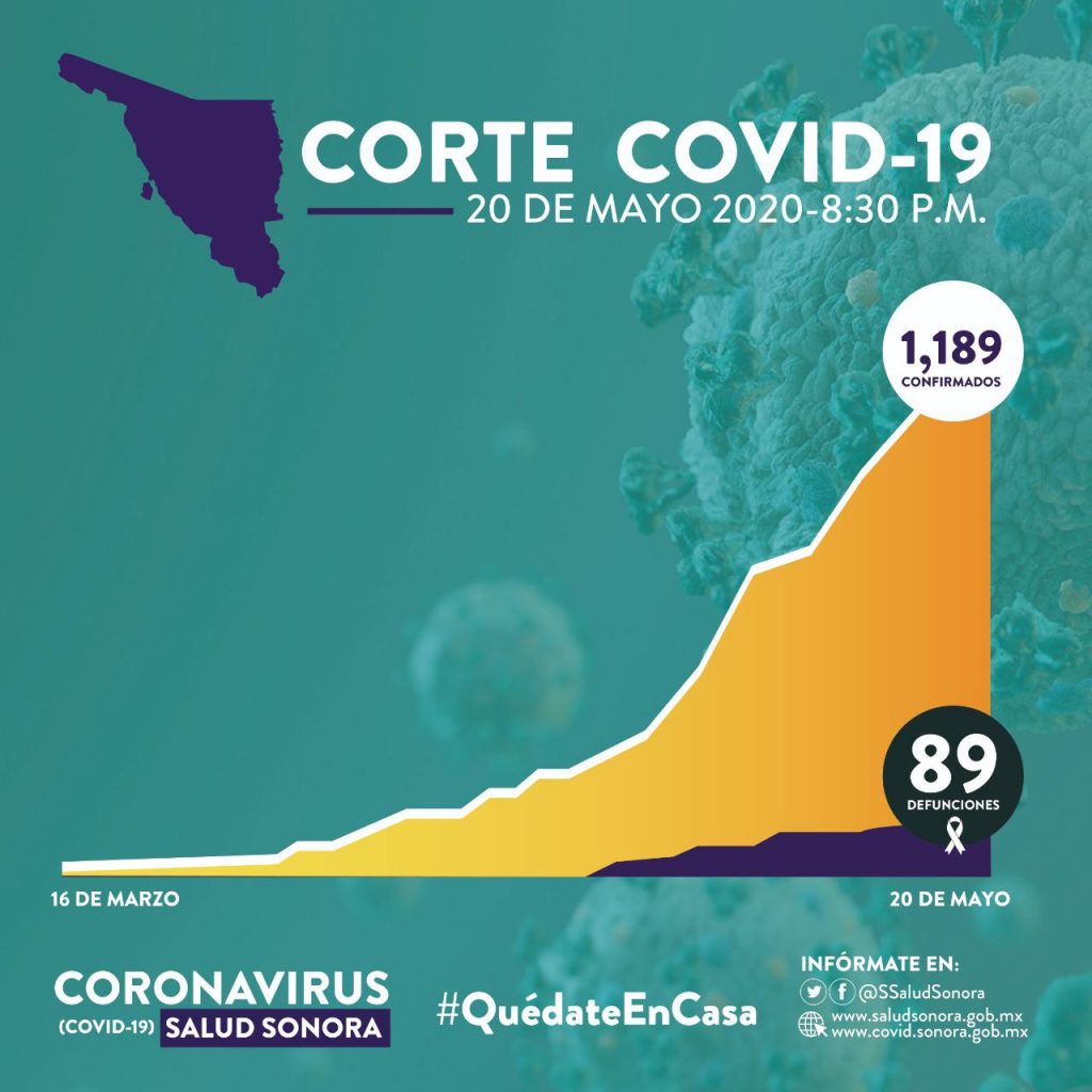 Clausen Iberri dijo que, con estas tres defunciones se acumulan 89 en Sonora, además con los 79 casos confirmados este miércoles, se acumulan mil 189 en total; los 79 casos ocurrieron en 39 mujeres y 40 hombres, con edades que oscilan entre los 6 y 86 años.