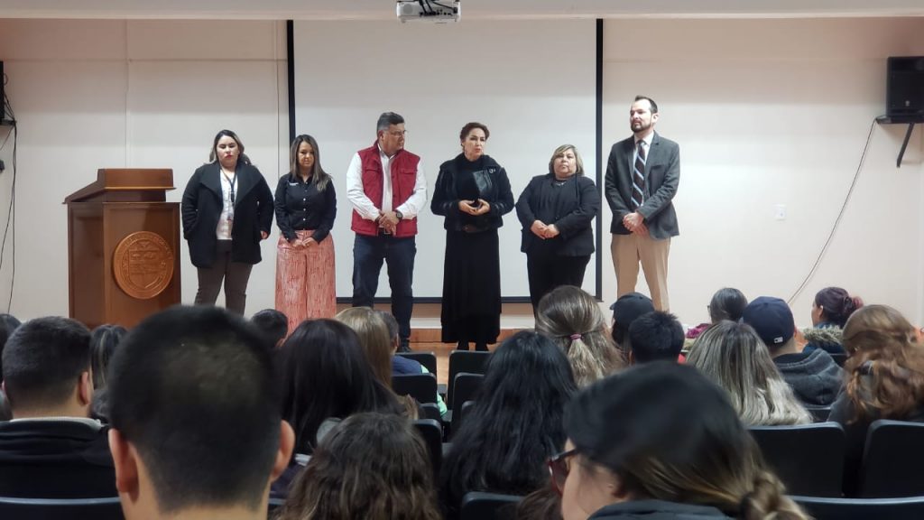 Presentes: Luis Enrique Riojas Duarte, Vicerrector de la Unidad Regional Norte de la Universidad de Sonora; Ramiro Laguna Montiel, jefe de la Jurisdicción Sanitaria Número 3; así como Carmen Hinostroza Fuentes, ponente del programa “Ponte Frente al Espejo”.